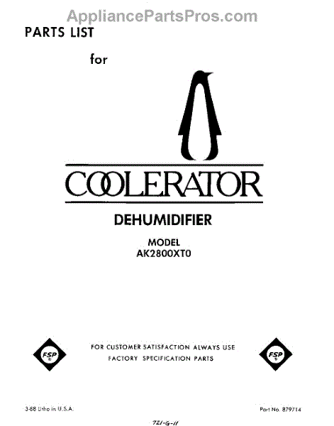 Parts for Whirlpool AK2800XT0: 01 - Section Parts