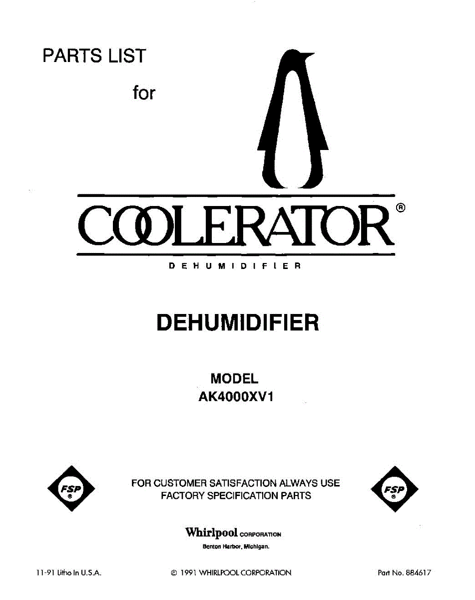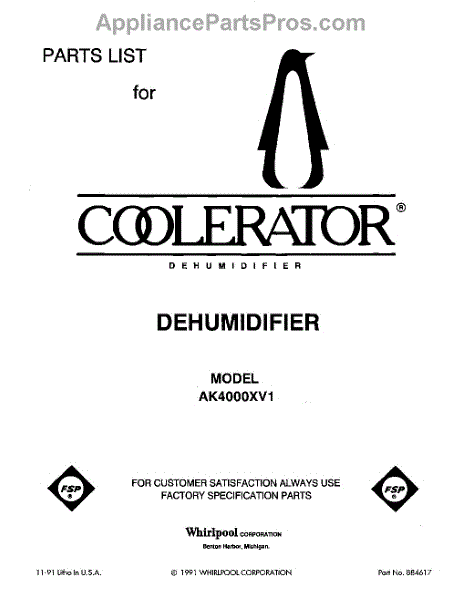 Whirlpool Dehumidifier Parts