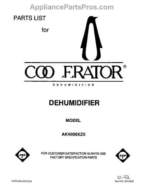 Parts for Whirlpool AK4000XZ0: 01 - Section Parts