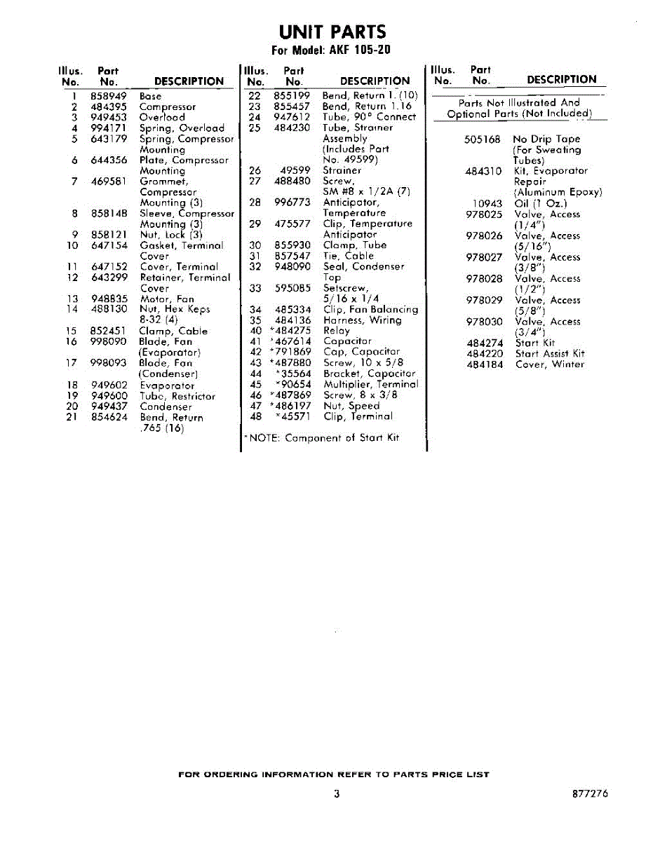 Parts for Whirlpool AKF10520: 03 - Section Parts