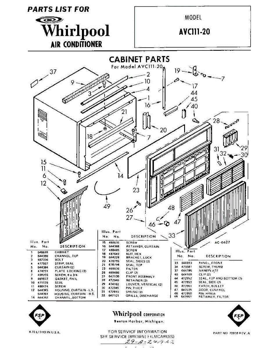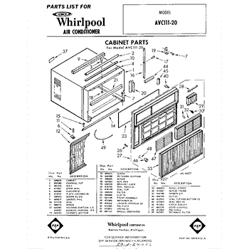 Parts for Whirlpool AVC11120: 01 - Section Parts