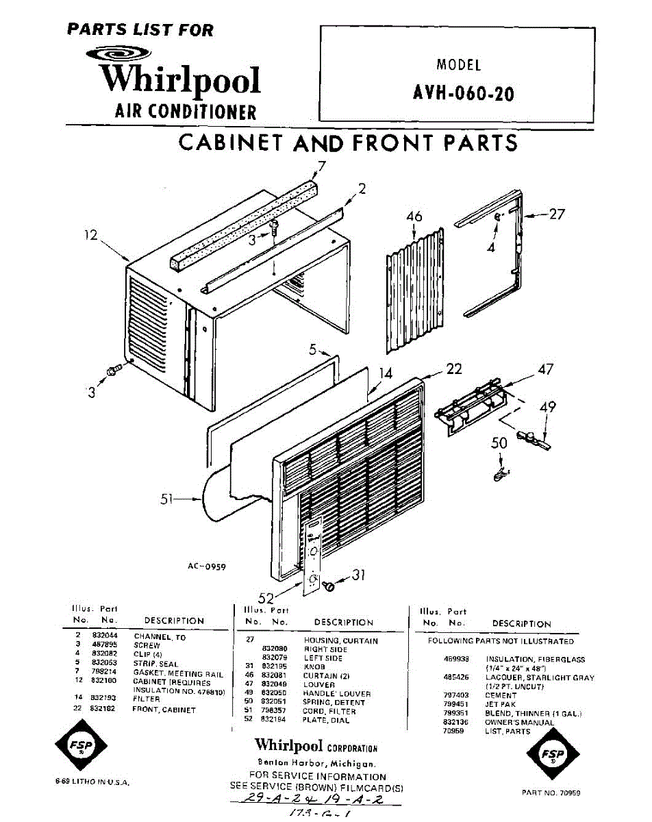 Parts for Whirlpool AVH06020: 01 - Section Parts