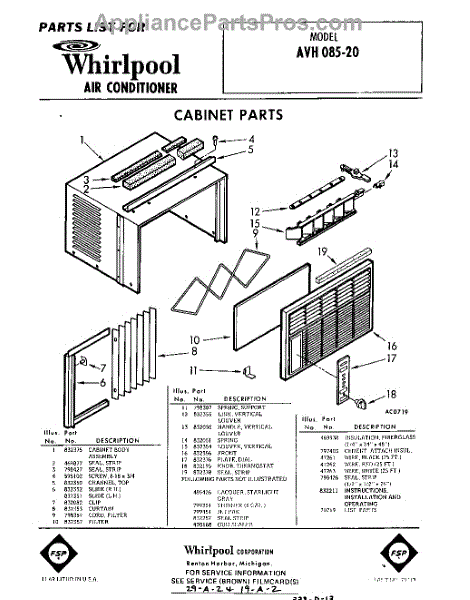 Whirlpool Air Conditioner Parts