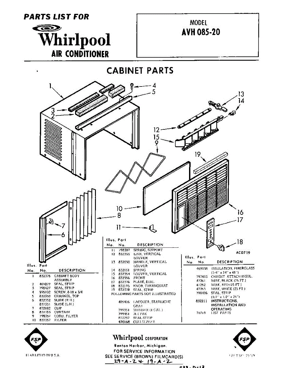 Parts for Whirlpool AVH08520: 01 - Section Parts