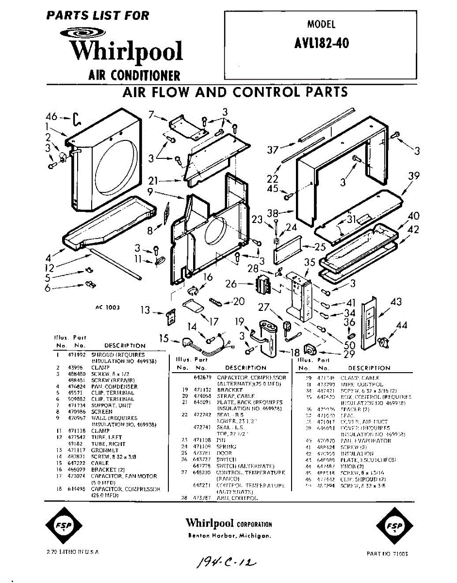 Parts for Whirlpool AVL18240: 01 - Section Parts