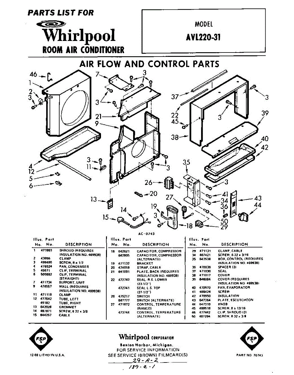 Parts for Whirlpool AVL22031: 01 - Section Parts