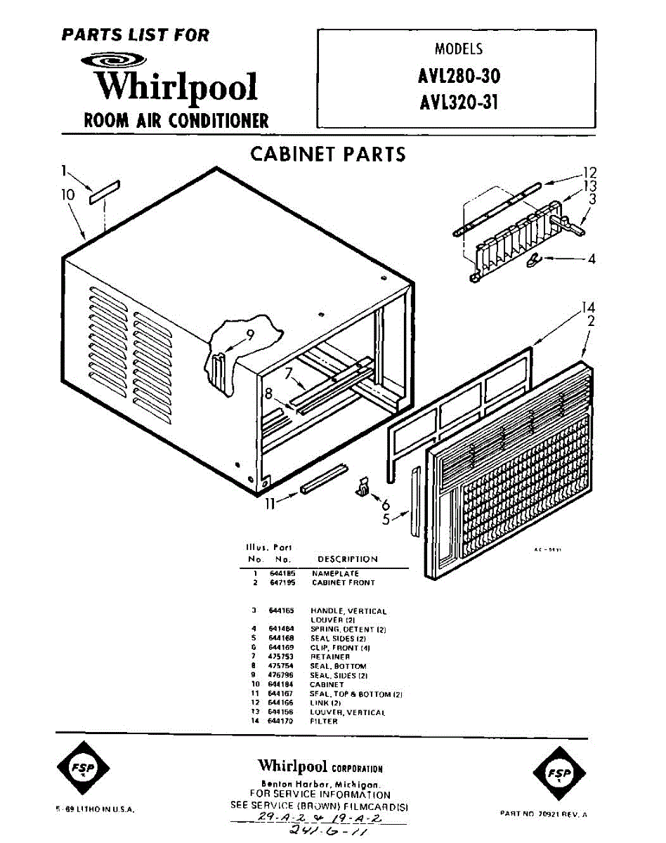 Parts for Whirlpool AVL28030: 01 - Section Parts