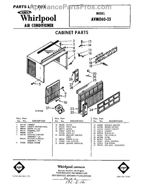 Parts for Whirlpool AVM06023: 01 - Section Parts