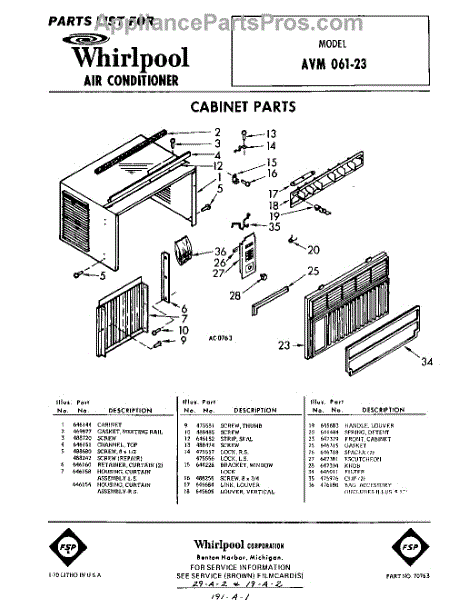 Parts for Whirlpool AVM06123: 01 - Section Parts