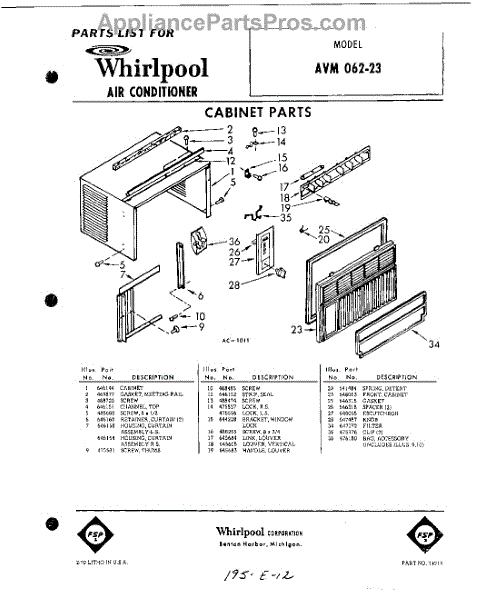 Parts for Whirlpool AVM06223: 01 - Section Parts