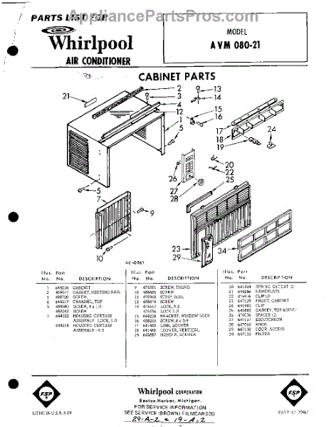 Parts for Whirlpool AVM08021: 01 - Section Parts