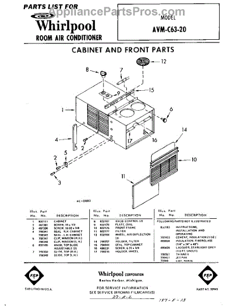 Whirlpool Air Conditioner Parts