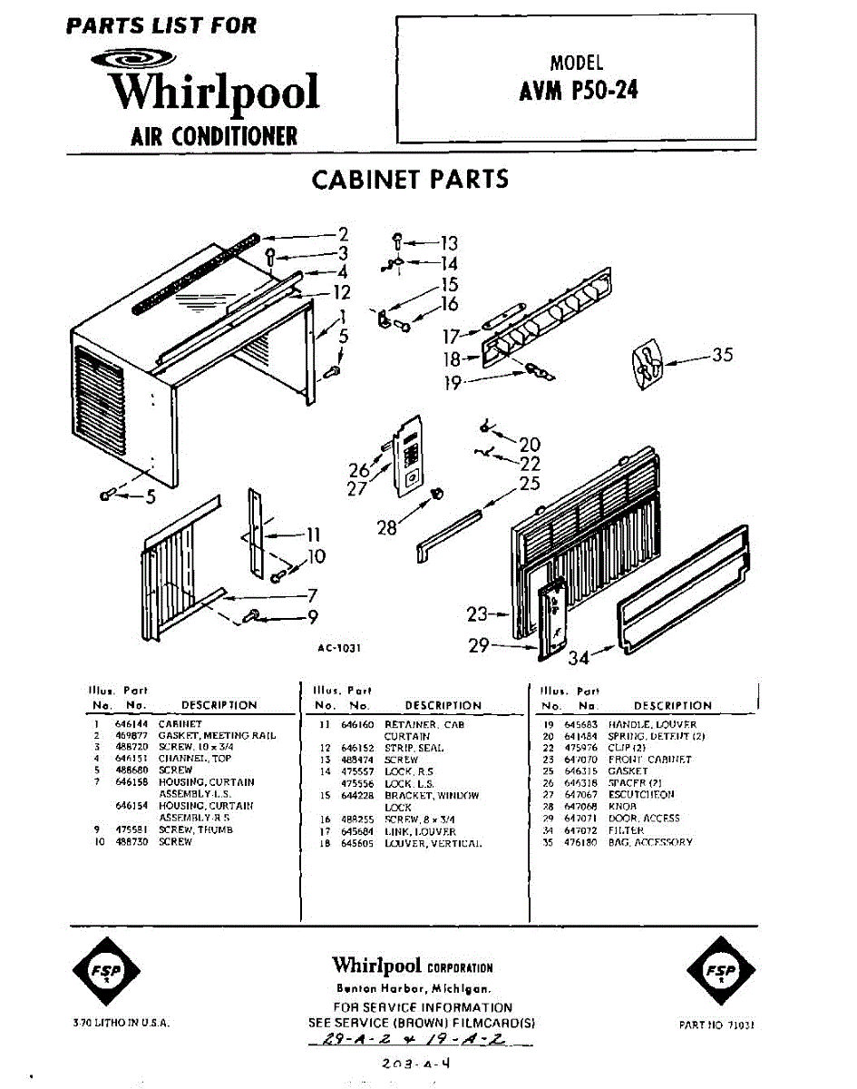 Parts for Whirlpool AVMP5024: 01 - Section Parts