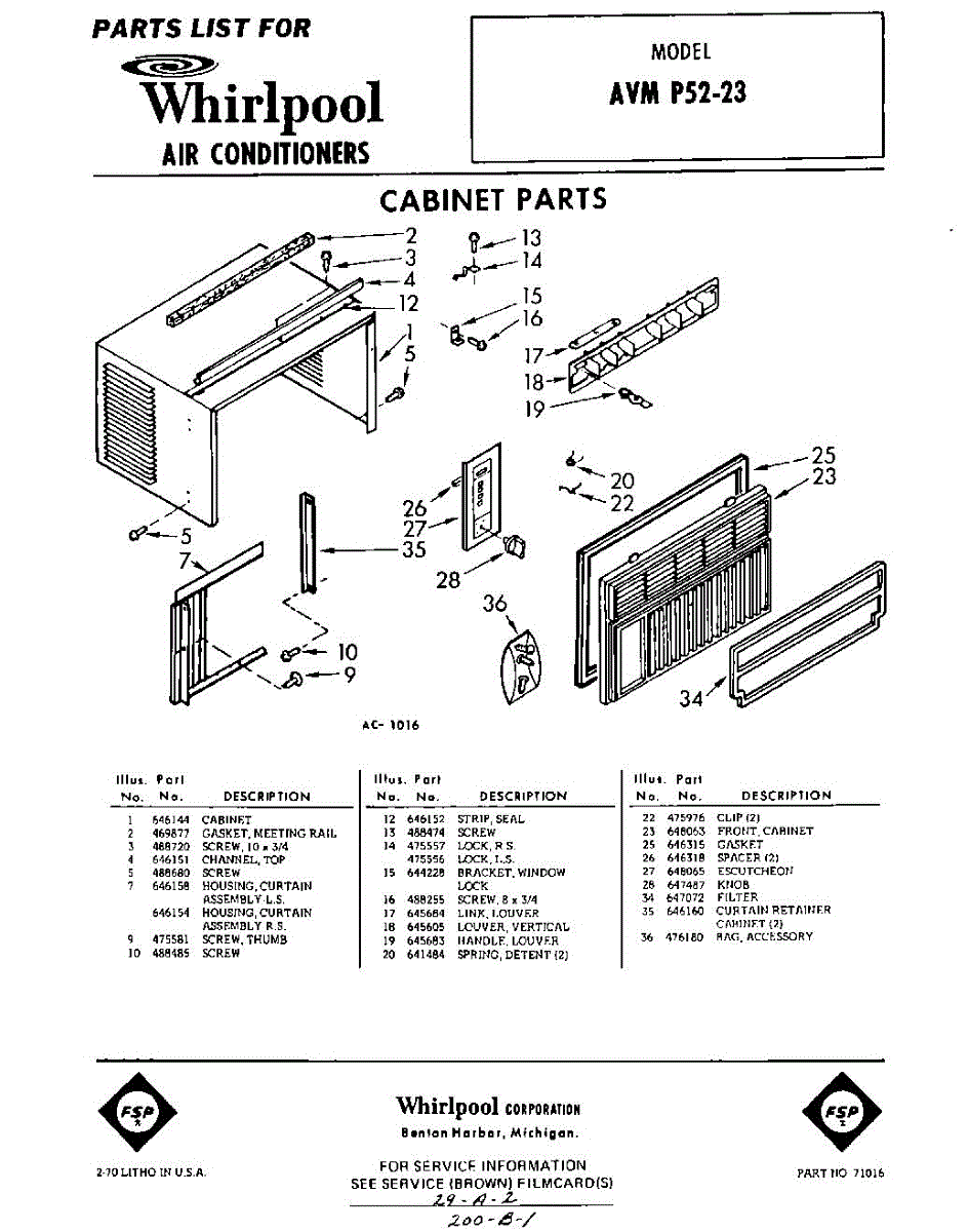 Parts for Whirlpool AVMP5223: 01 - Section Parts