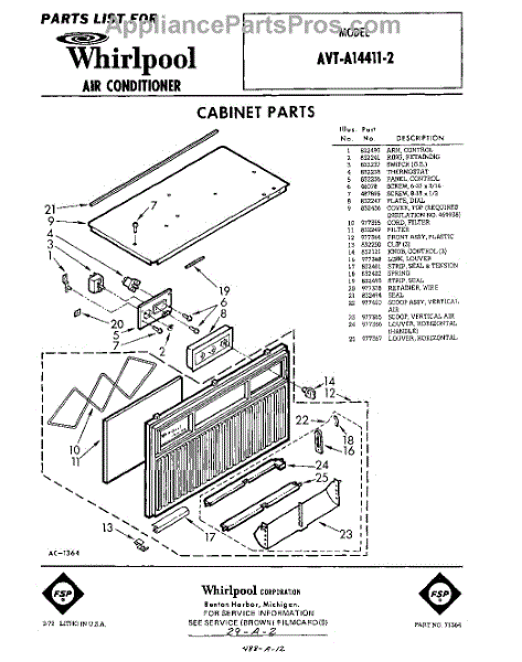 Parts for Whirlpool AVTA144112: 01 - Section Parts