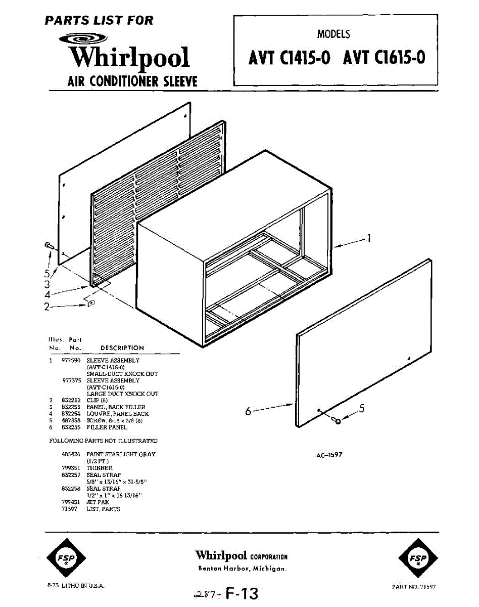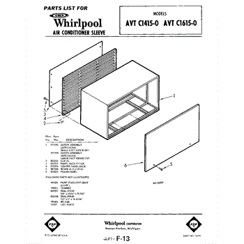 Parts for Whirlpool AVTC16150: 01 - Section Parts
