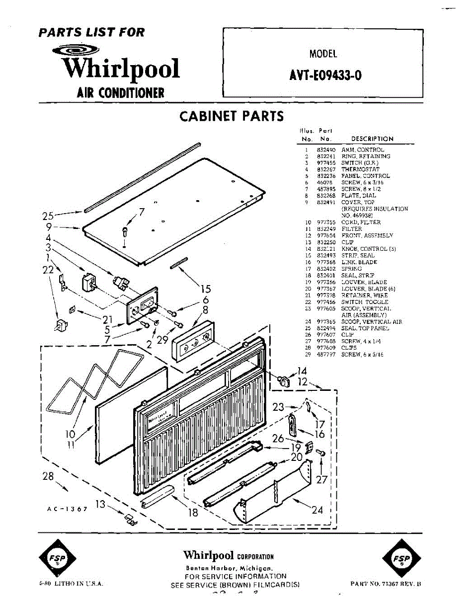 Parts for Whirlpool AVTE094330: 01 - Section Parts