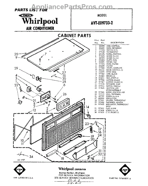 Parts for Whirlpool AVTE097332: 01 - Section Parts