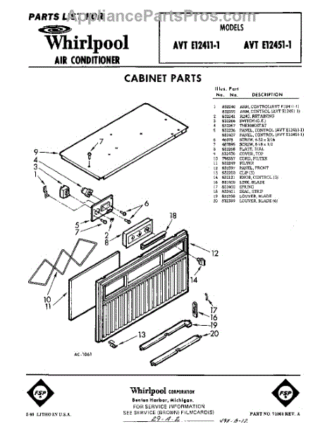 Parts for Whirlpool AVTE124111: 01 - Section Parts