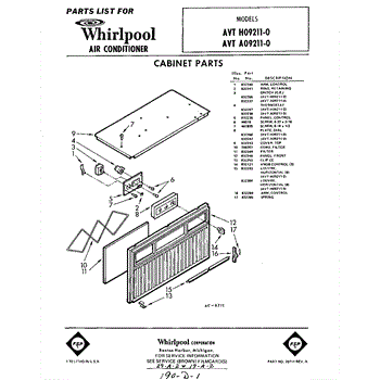 Parts for Whirlpool AVTH092110: 01 - Section Parts