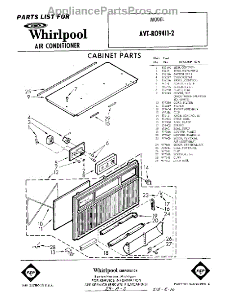 Parts for Whirlpool AVTR094112: 01 - Section Parts