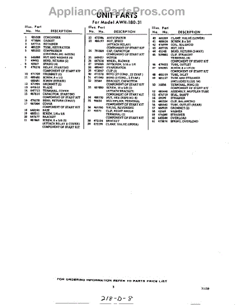 Parts for AWH18031