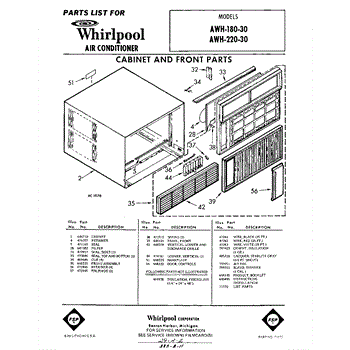 Parts for Whirlpool AWH22030: 01 - Section Parts