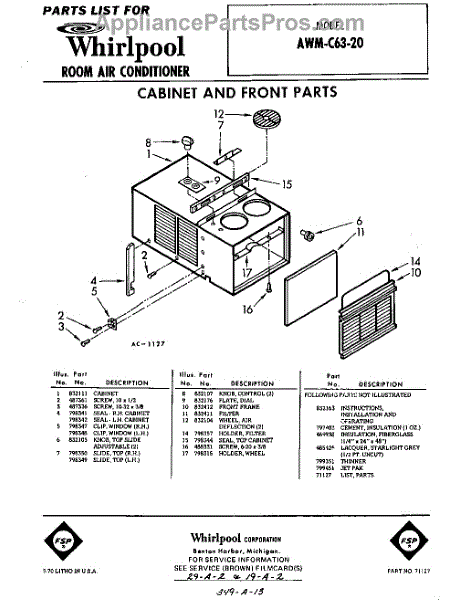 Parts for Whirlpool AWMC6320: 01 - Section Parts