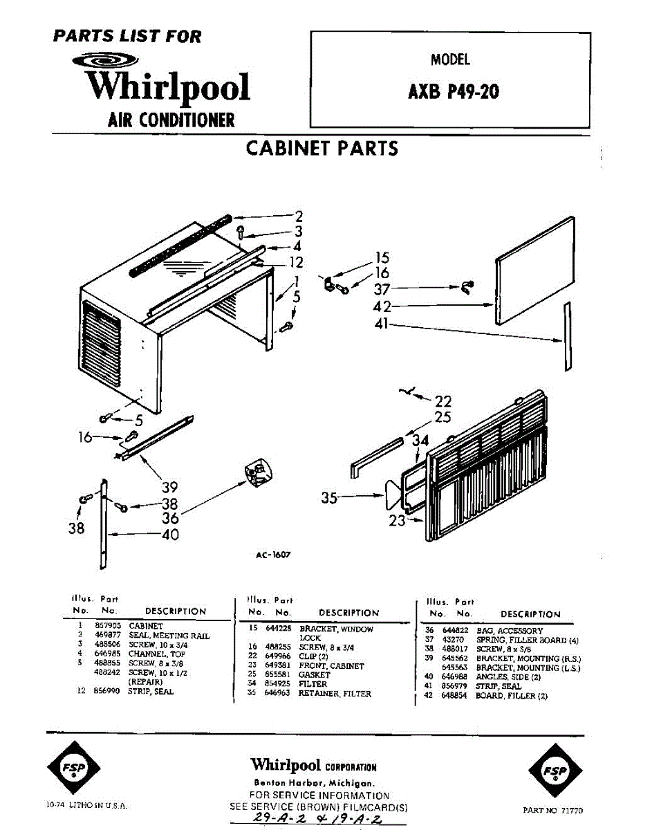 Parts for Whirlpool AXBP4920: 01 - Section Parts
