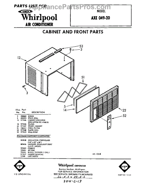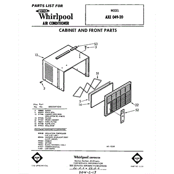 Parts for Whirlpool AXE04920: 01 - Section Parts