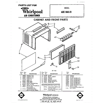 Parts for Whirlpool AXE06021: 01 - Section Parts
