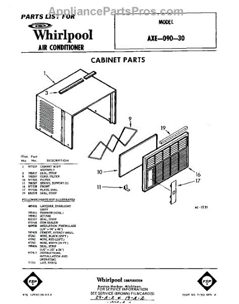 Parts for Whirlpool AXE09030: 01 - Section Parts
