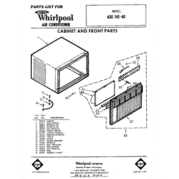 Parts for Whirlpool AXE14540: 01 - Section Parts