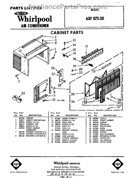 Parts for Whirlpool AXF07520: 01 - Section Parts
