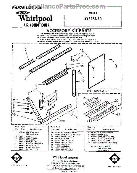 Parts for Whirlpool AXF18530: 01 - Section Parts