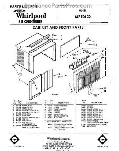 Parts for Whirlpool AXFE0620: 01 - Section Parts