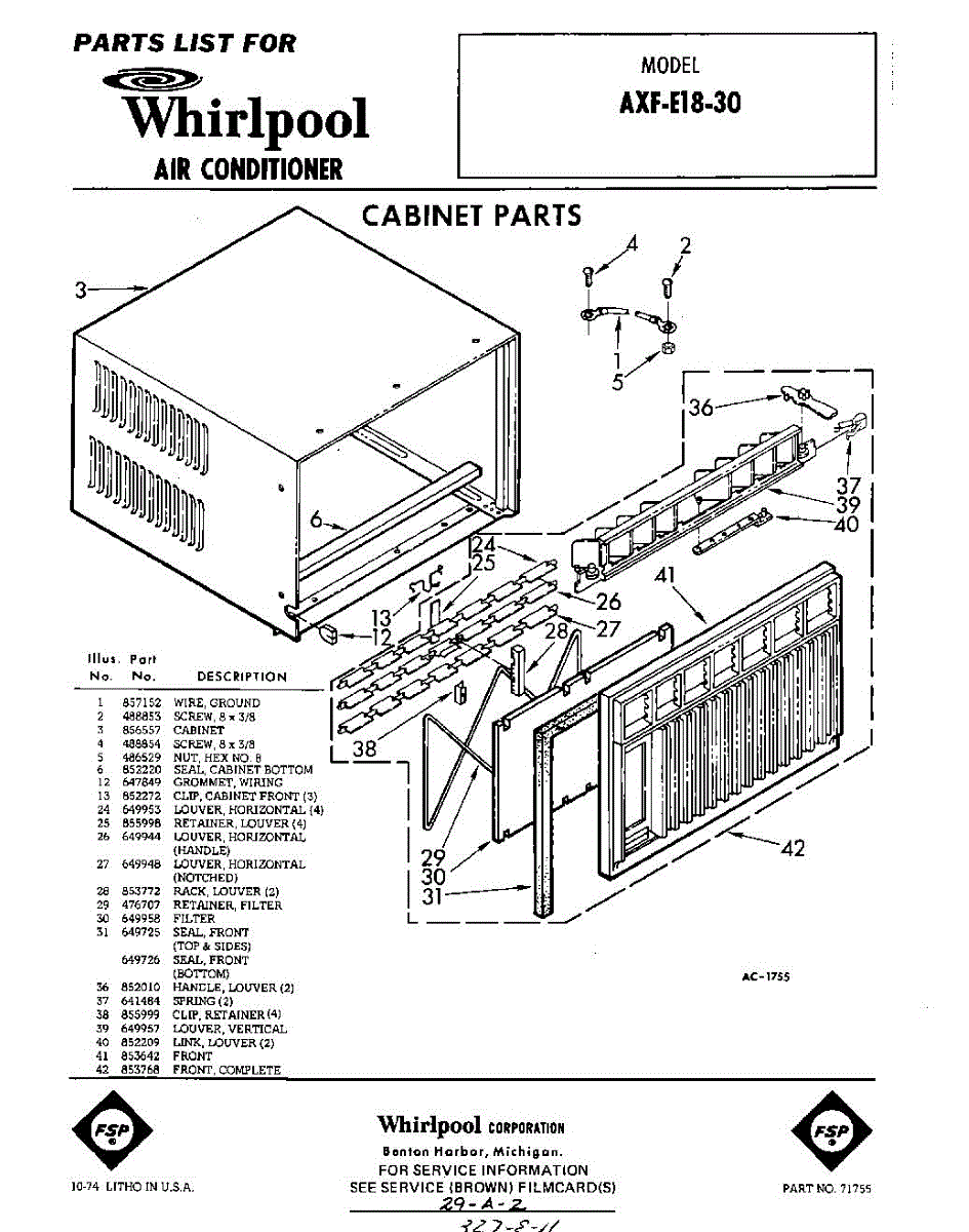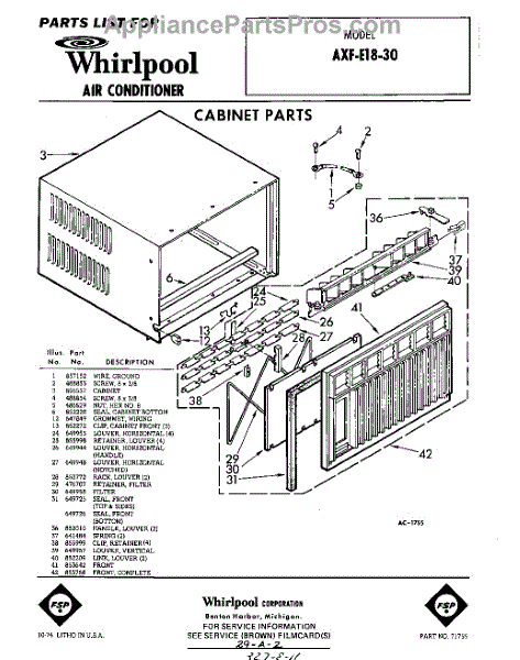 Parts for Whirlpool AXFE1830: 01 - Section Parts