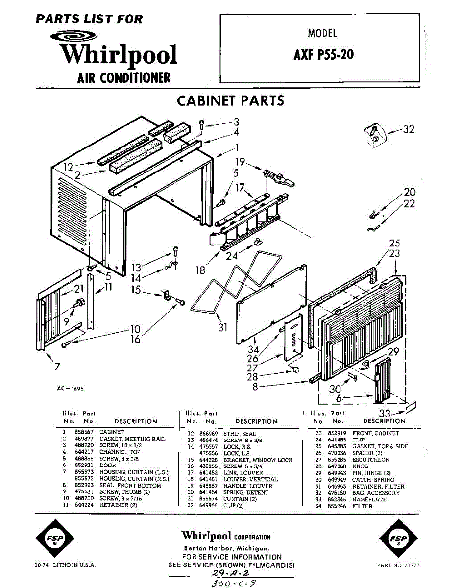 Parts for Whirlpool AXFP5520: 01 - Section Parts