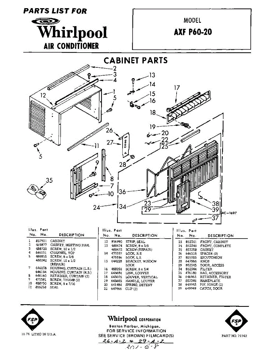 Parts for Whirlpool AXFP6020: 01 - Section Parts