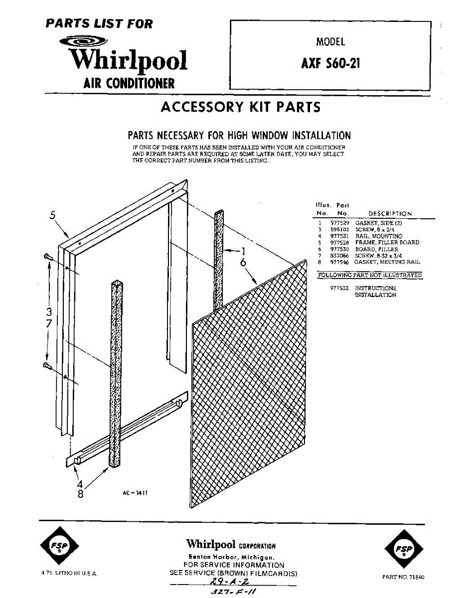 Parts for Whirlpool AXFS6021: 01 - Section Parts