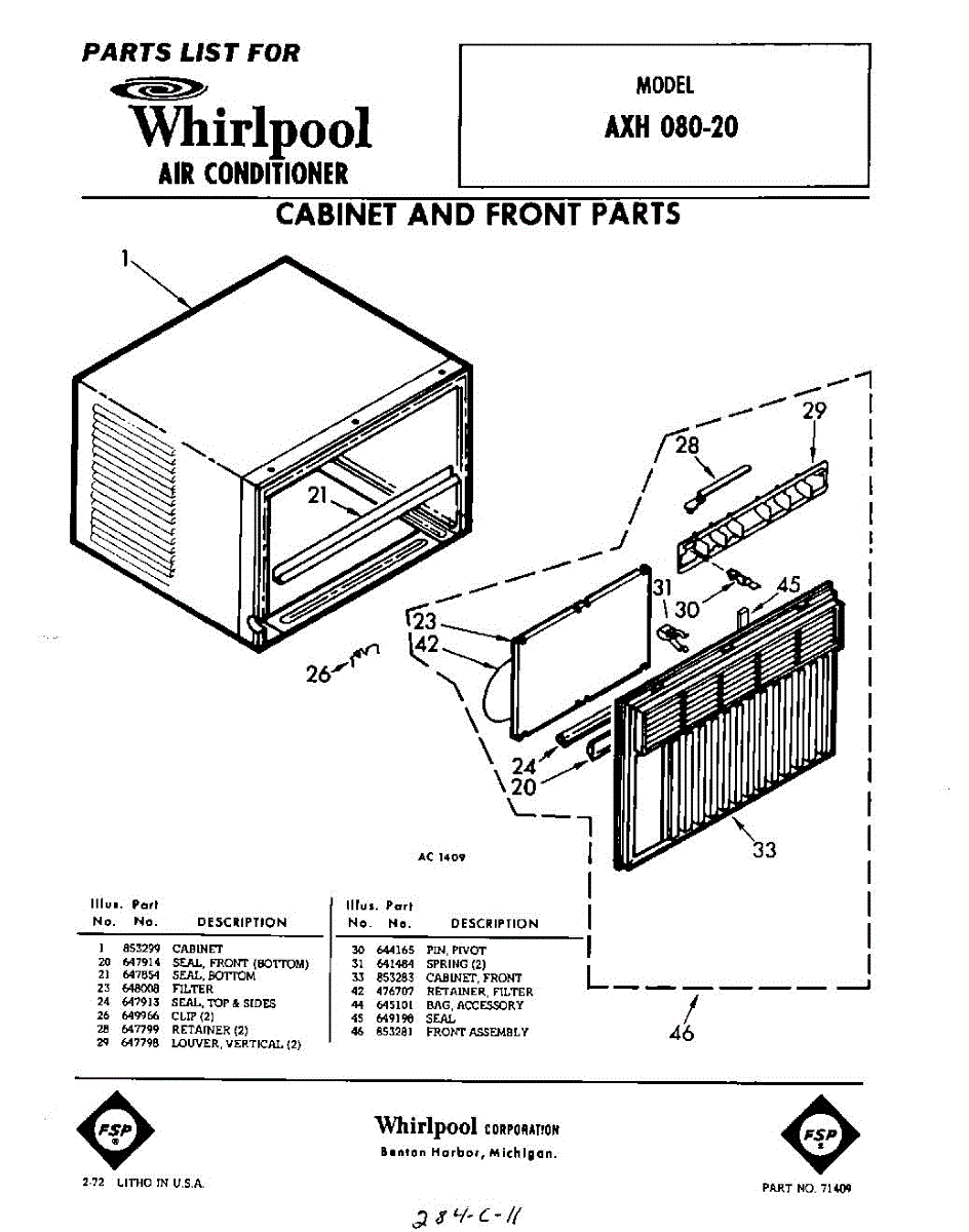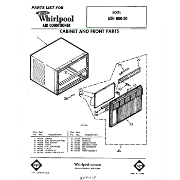 Parts for Whirlpool AXH08020: 01 - Section Parts