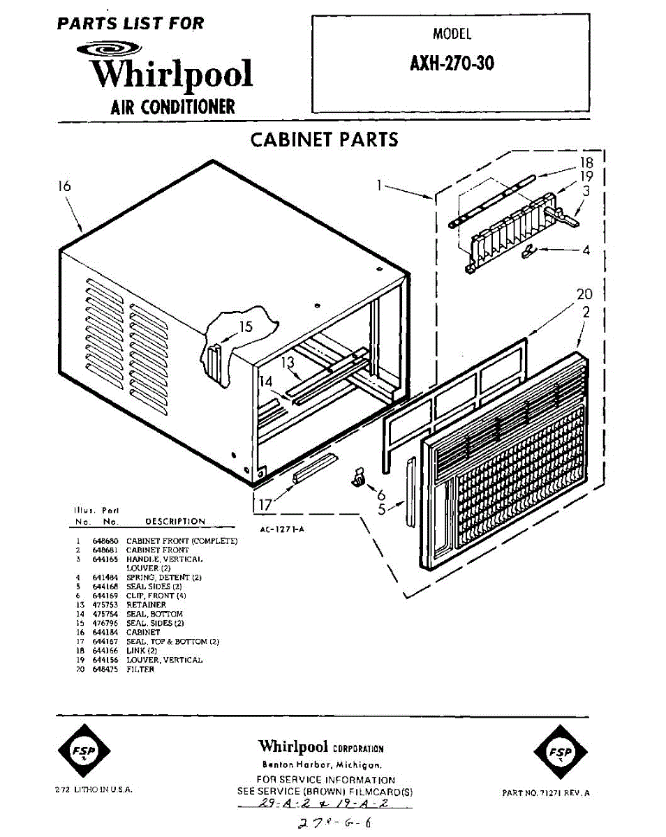 Parts for Whirlpool AXH27030: 01 - Section Parts