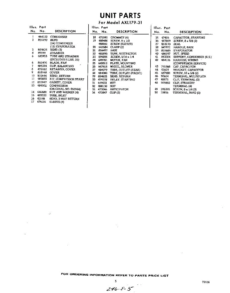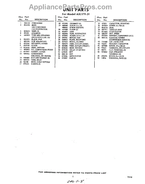 Parts for Whirlpool AXL17931: 05 - Section Parts
