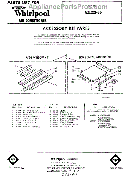 Parts for Whirlpool AXL22130: 01 - Section Parts