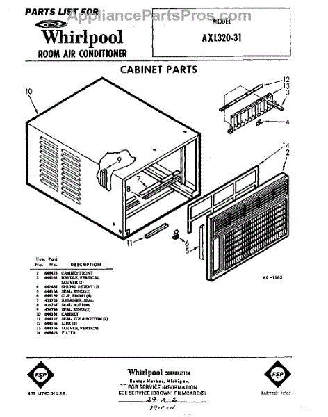 Parts for Whirlpool AXL32031: 01 - Section Parts