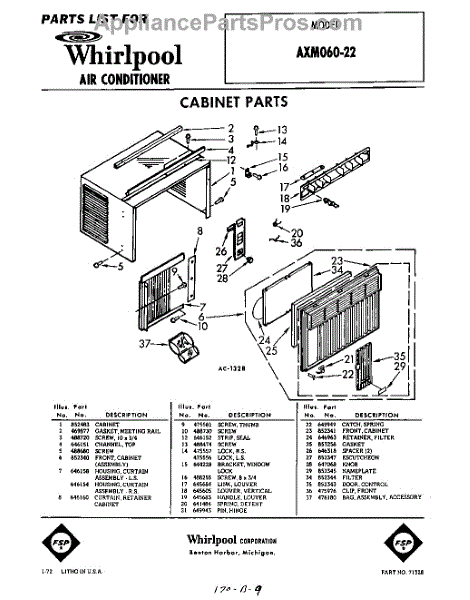 Parts for Whirlpool AXM06022: 01 - Section Parts
