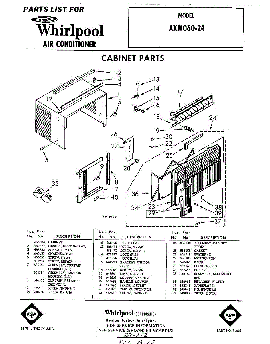 Parts for Whirlpool AXM06024: 01 - Section Parts