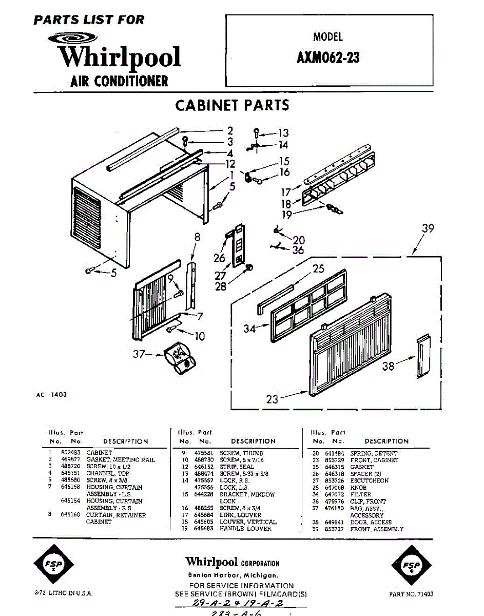 Parts for Whirlpool AXM06223: 01 - Section Parts
