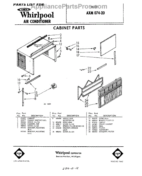 Parts for Whirlpool AXM07420: 01 - Section Parts
