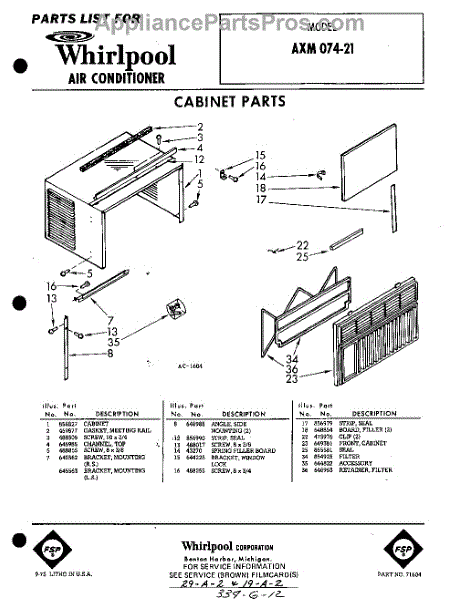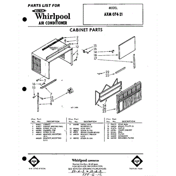 Parts for Whirlpool AXM07421: 01 - Section Parts